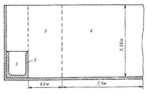 1-а ванна; 2-b ванна со стационарной перегородкой; 3 зона 0; 4 зона 1;